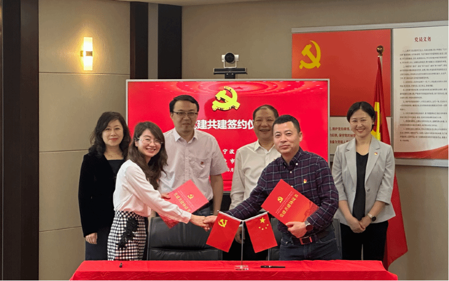 党支部与中国银行宁波市科技支行党委举行党建共建签约仪式。双方领导班子成员、党员代表共20余人出席活动。