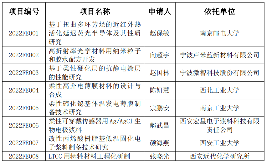 浙江省柔性电子重点实验室第一批开放基金课题共8项。参照《2022年度浙江省柔性电子重点实验室开放基金课题指南》及《浙江省柔性电子重点实验室开放课题管理条例》,经实验室学术委员会委员评审,拟资助以下课题,现公示如下: